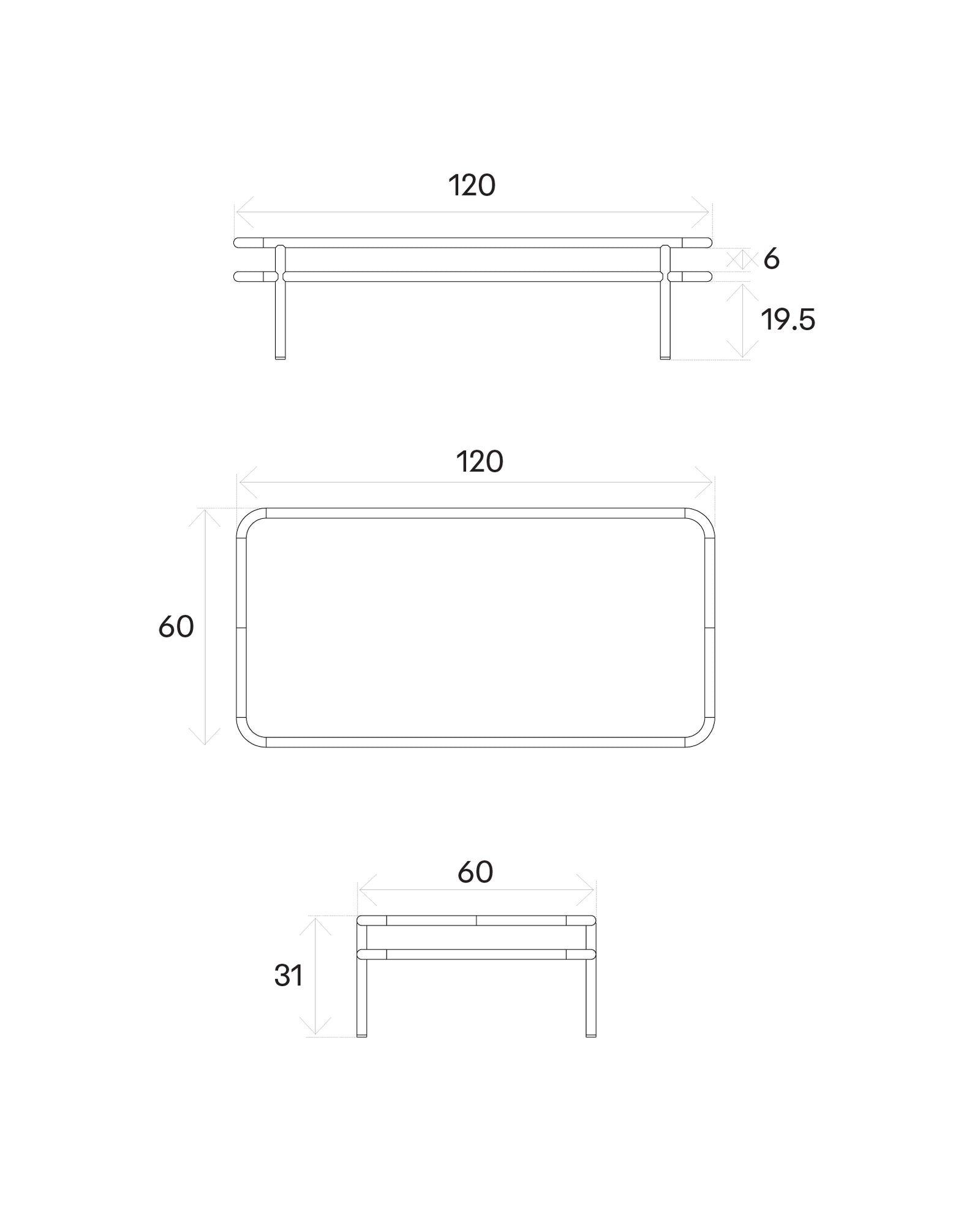UD Coffee Table 120x60 / Oak Top with Walnut Stain - Pearl White